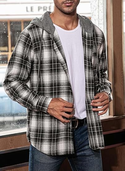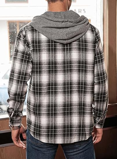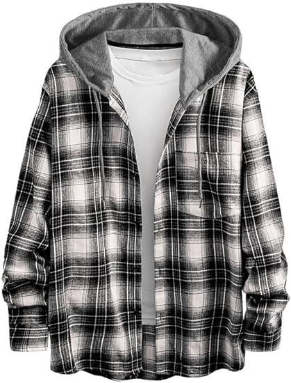• Hooded Design:Featuring a range of colors,lightweight and modern basic flannels plaid hoodie shirts stands out in style. The single button down plaid design, coupled with the added hood, creates a unique and trendy look. Perfect for spring and autumn, these jackets add a touch of versatility to your wardrobe.