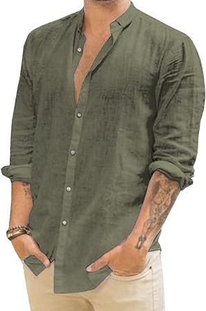 Stylish Design: This casual shirt Long Sleeve, Button Down Closure, Band Collar, Vertical Pleats. High quality stitch. Nice front pattern. Keep cool and composed when the temps surge in this casual shirt cleanly finished with a band collar.