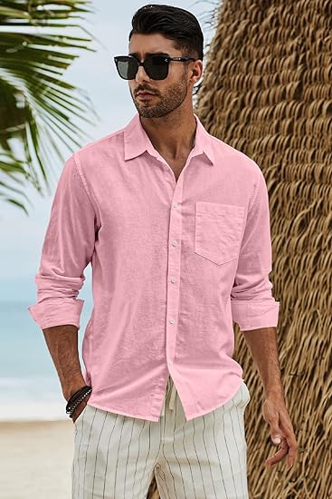 Material: Our fashion men’s button down long sleeve dress shirts are made with high-quality cotton linen fabric, ensuring breathability, lightweight feel, and softness. The fabric is also skin-friendly, providing comfort throughout the day. It can be worn as a casual shirt or a dress shirt, offering versatility. Check out our real video demonstrating each color option of this men’s linen shirt for your reference.