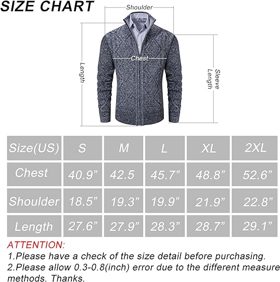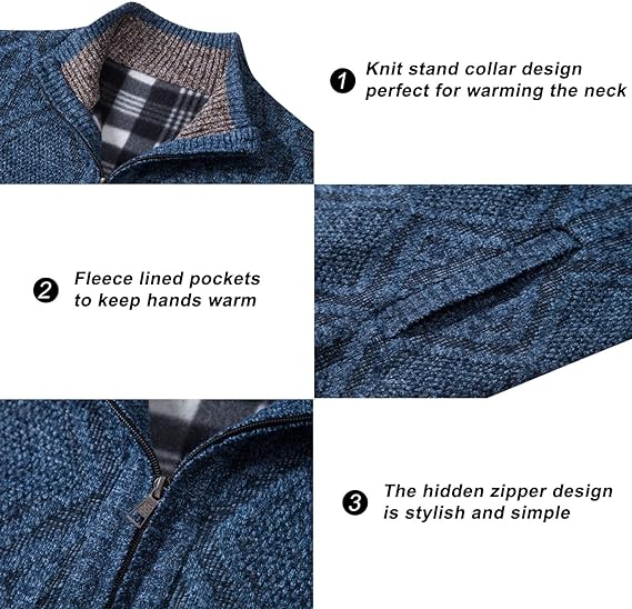 - MULTIPLE COLORS – The warm thermal mens full zip sweaters comes in a variety of colors, easy to go and fit with shirts, trousers or jackets. Thick mens zip sweater, perfect outerwear for spring, autumn and winter everyday outdoor activities, daily casual wear