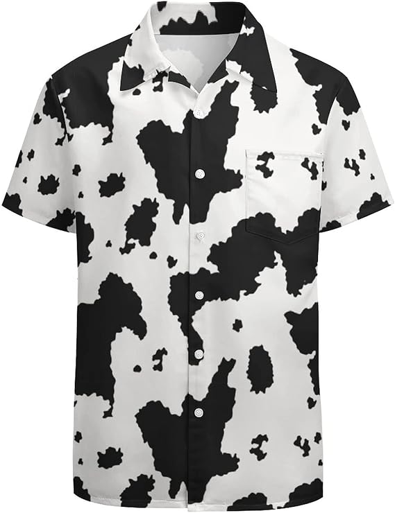 【Cow Print Shirt】 cow shirt made of 95% Polyester + 5% Spandex, helping sweat evaporates faster. Silky, breathable, comfortable and durable,these are the reasons why choosecow shirts for men. Imagine wearing Black White cow shirt, it will enable you with your family to enjoy a great holiday / weekend on the beach in comfort, what a perfect Cow hawaiian shirt it will be.