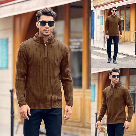 • Classic knit pullover sweater, quarter zip mock neck, solid, canle ribbed knitted, long sleeve, ribbed cuffs and hem, slim fit, casual style. Basic slim fit stylish & fashion pullover sweater can perfectly keep you warm and elegant feel.